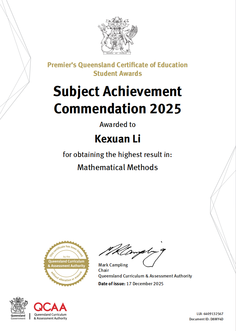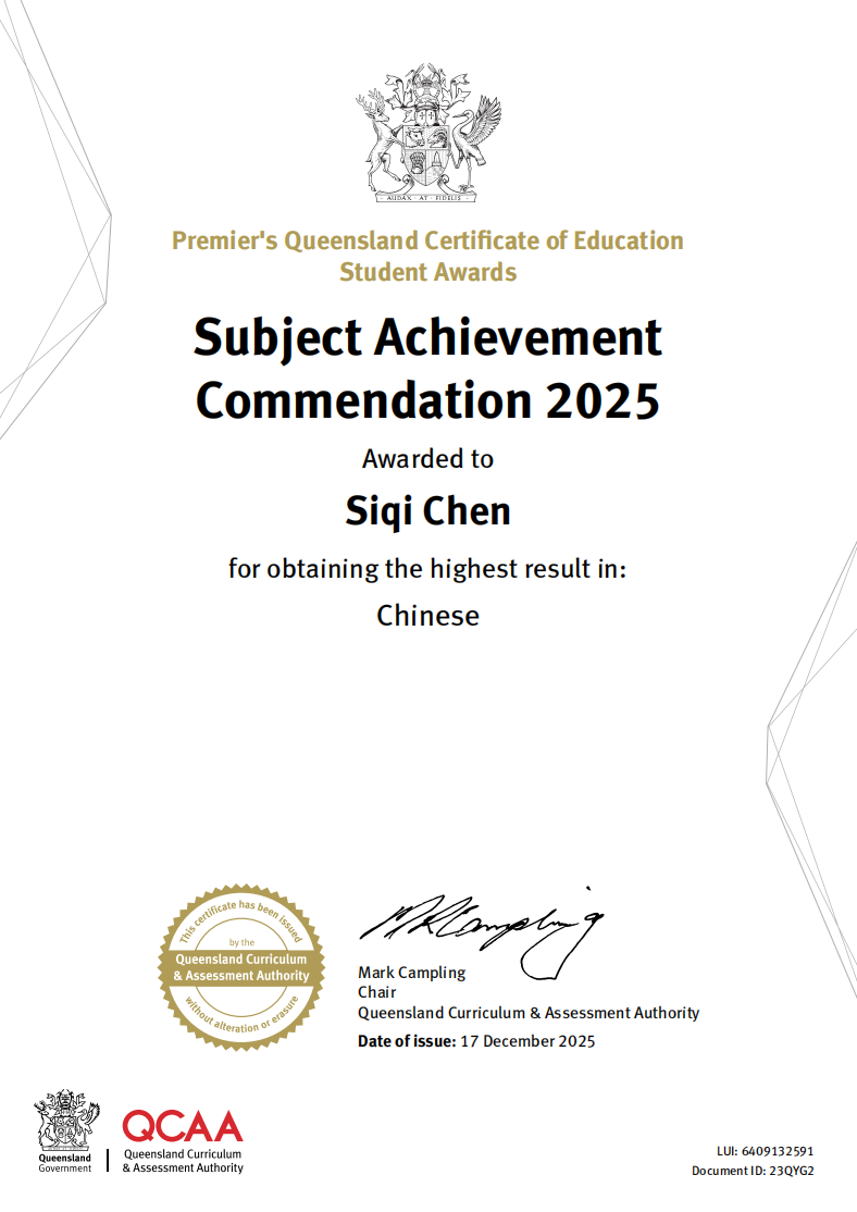 捷报!2026届QCE毕业生斩获两个澳洲高考学科最高分殊荣!